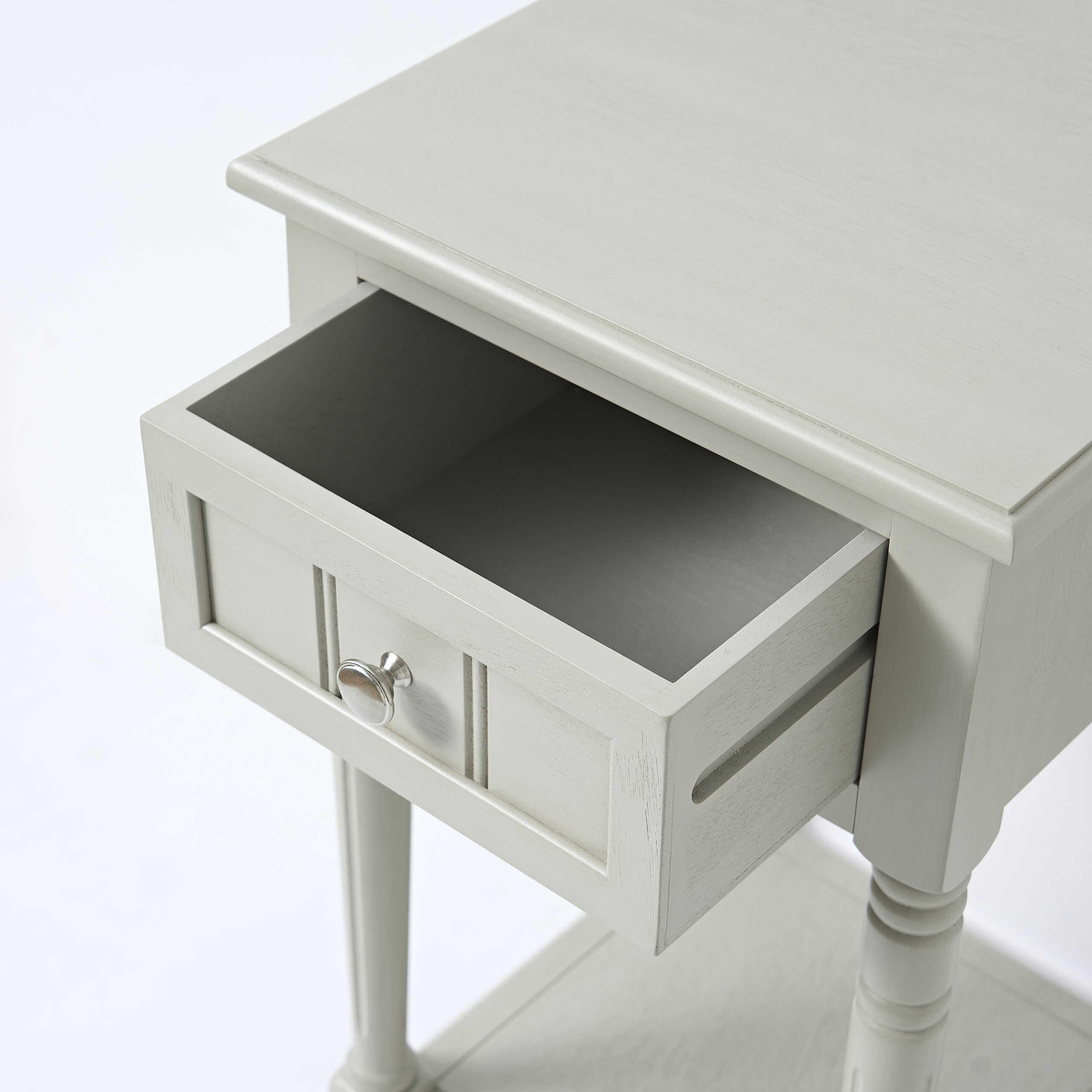 Breng charme en functionaliteit samen met het VIDI Home Eldur nachtkastje. Uitgevoerd in gebroken wit hout en voorzien van een praktische lade en onderplank, combineert dit meubelstuk klassieke elegantie met praktisch gebruiksgemak. Dankzij het compacte formaat past de Eldur perfect naast het bed, in de woonkamer of in de hal als stijlvolle bijzettafel.