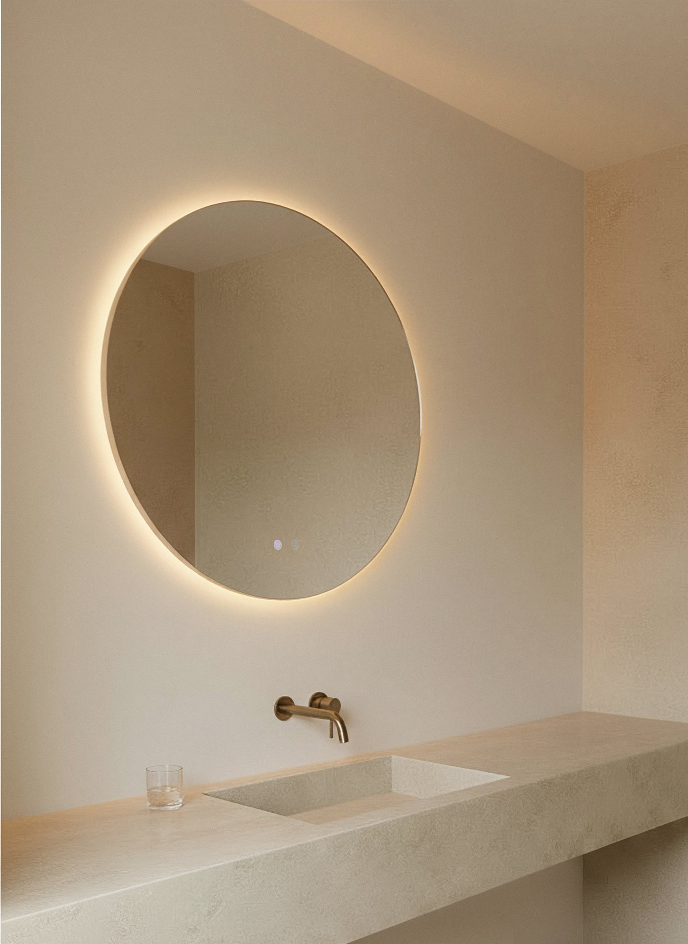 De subtiele LED-verlichting met een lichtopbrengst van 1200 lumen zorgt voor een warme en gelijkmatige gloed, ideaal voor badkamers, toiletten of make-upruimtes.