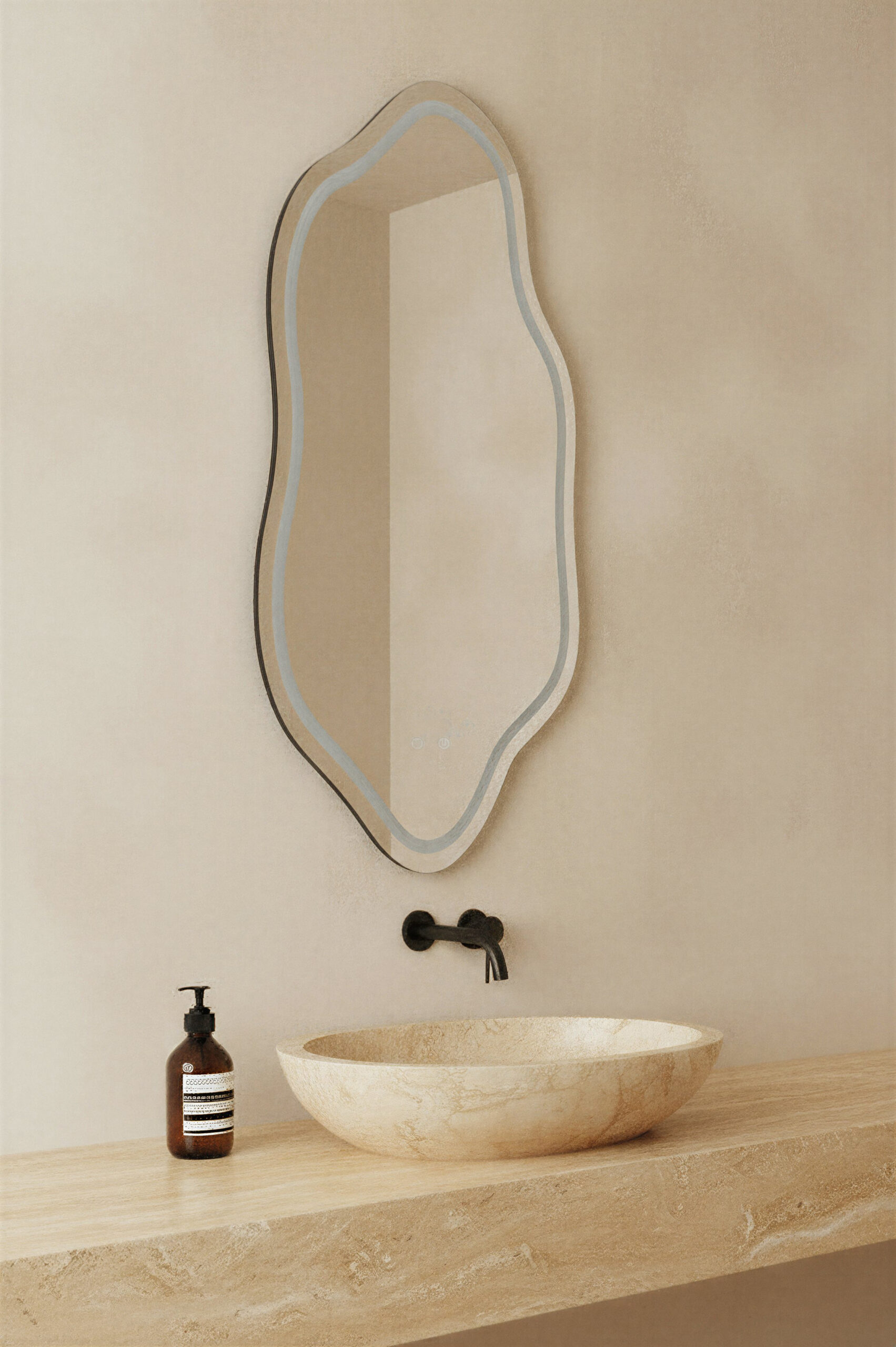 De VIDI Home HJORD brengt karakter en elegantie in elke badkamer of slaapkamer dankzij zijn vloeiende asymmetrische vorm en moderne LED-verlichting.