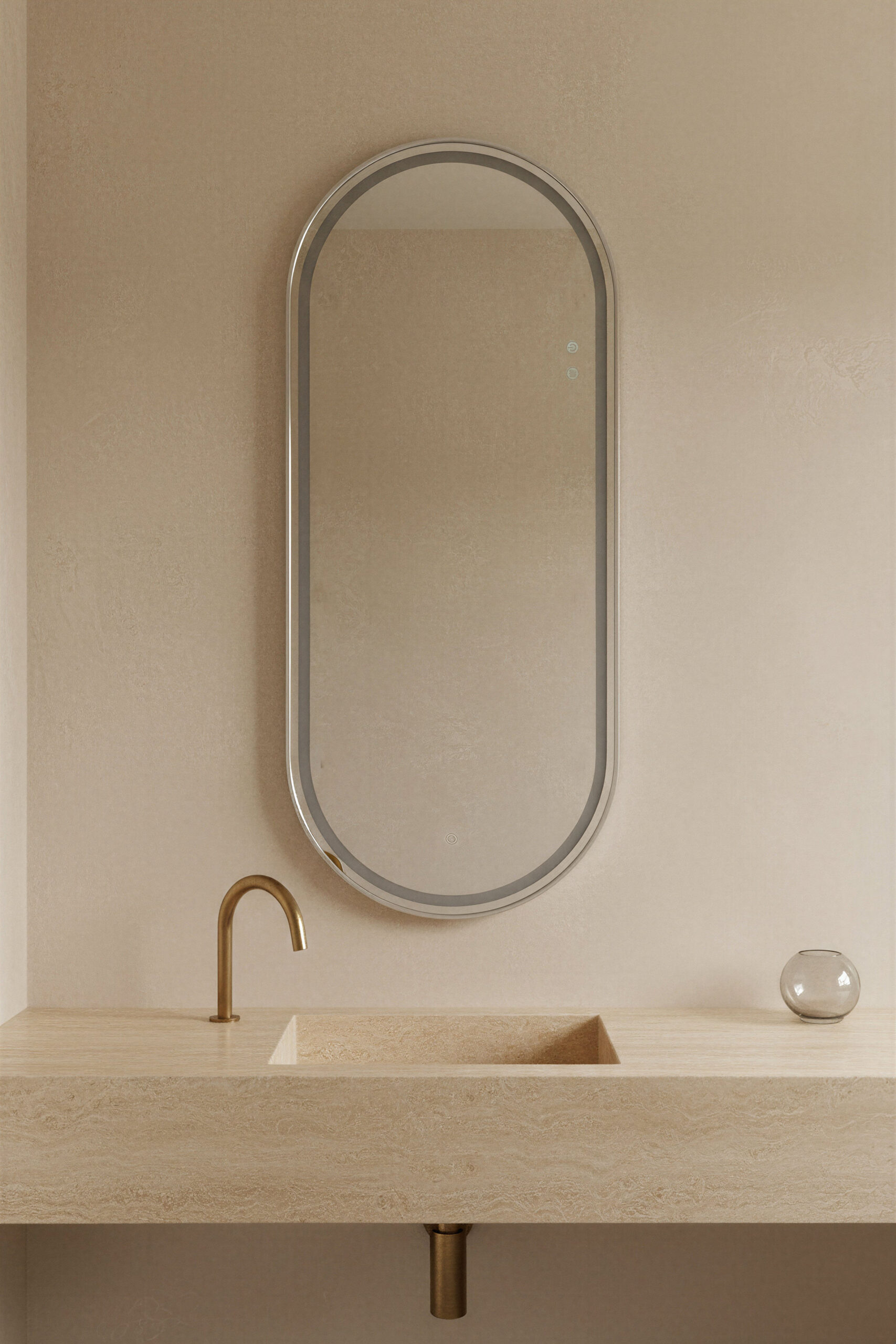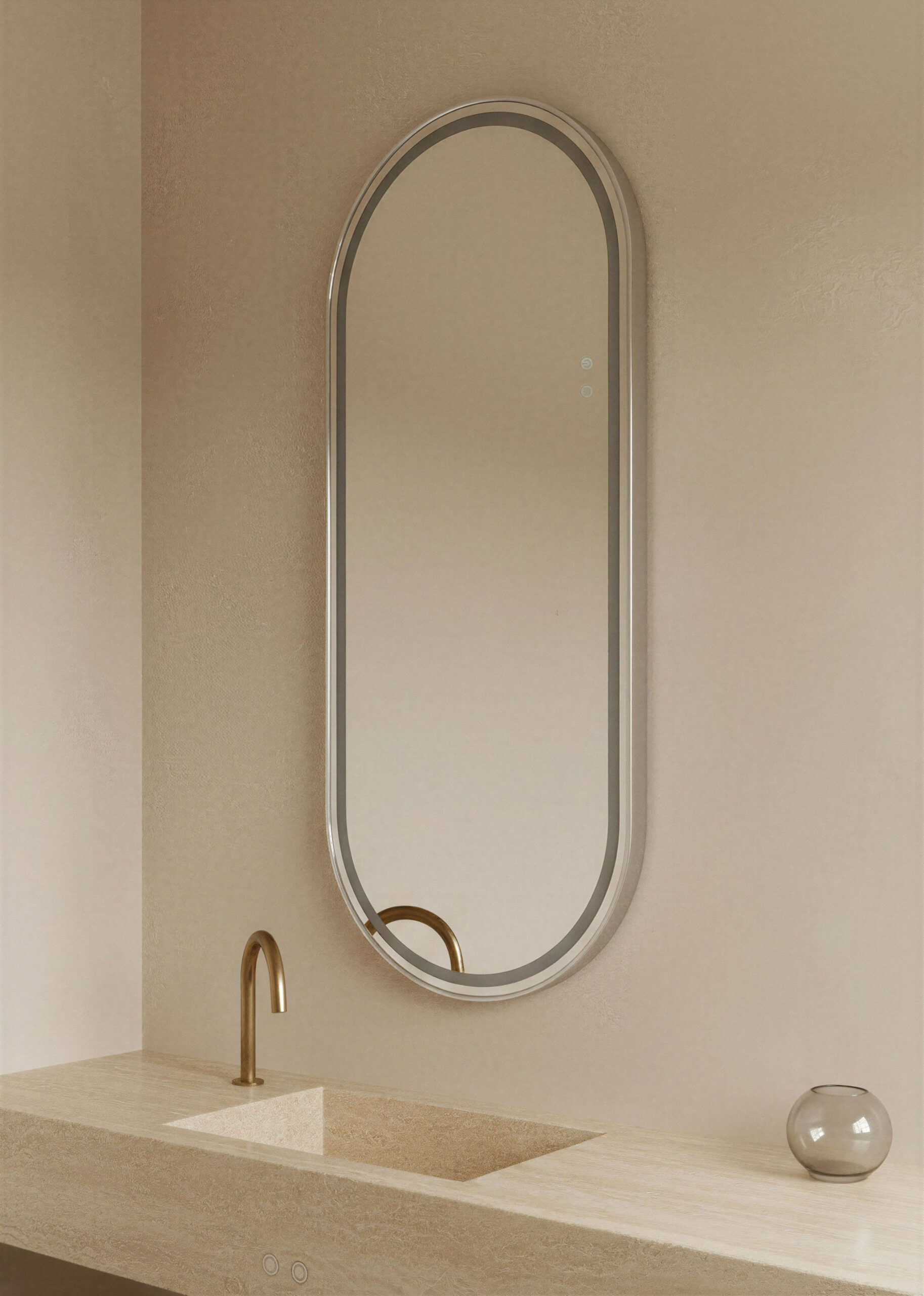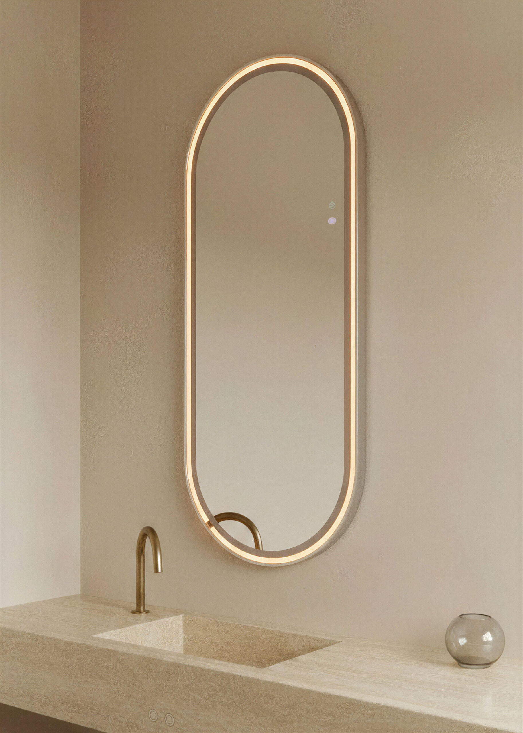 Met haar strakke, ovale vorm en verfijnde LED-verlichting straalt ze moderne elegantie uit.