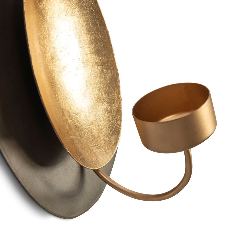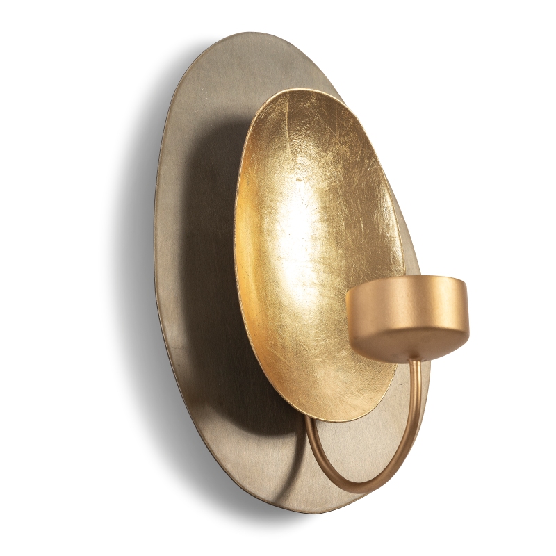 Deze moderne wandkandelaar combineert functionaliteit en esthetiek. Het compacte formaat en de combinatie van goud en zilver maken de Sogno D’oro geschikt voor zowel moderne als industriële interieurs. De organische ovale vorm geeft een verfijnde en unieke uitstraling, terwijl het metaal zorgt voor een robuuste en stijlvolle afwerking. Deze kandelaar is niet alleen perfect als wanddecoratie voor de woonkamer, maar ook als elegante muurversiering in de slaapkamer of hal.