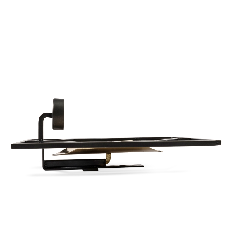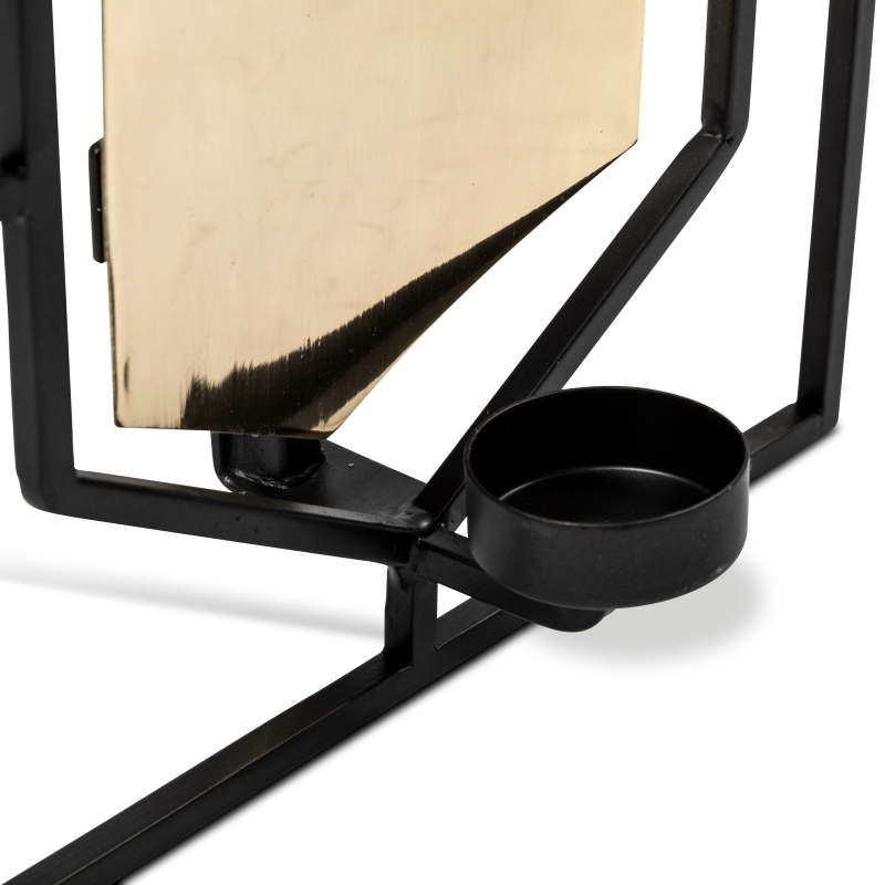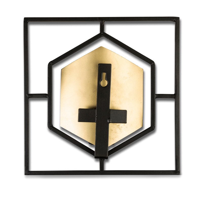 De Tesoro Nascosto muurkandelaar combineert geometrische vormen op een unieke manier: een vierkante basis met een verfijnde zeshoekige binnenvorm. Deze goud-zwarte wandkandelaar is ontworpen om een prachtig lichtspel te creëren, waarbij de kaarshouder het licht op een warme en uitnodigende manier weerkaatst. Perfect als muurdecoratie voor de woonkamer of slaapkamer, biedt deze wanddecoratie zowel functionaliteit als een verfijnde esthetiek voor elk modern of industrieel interieur.